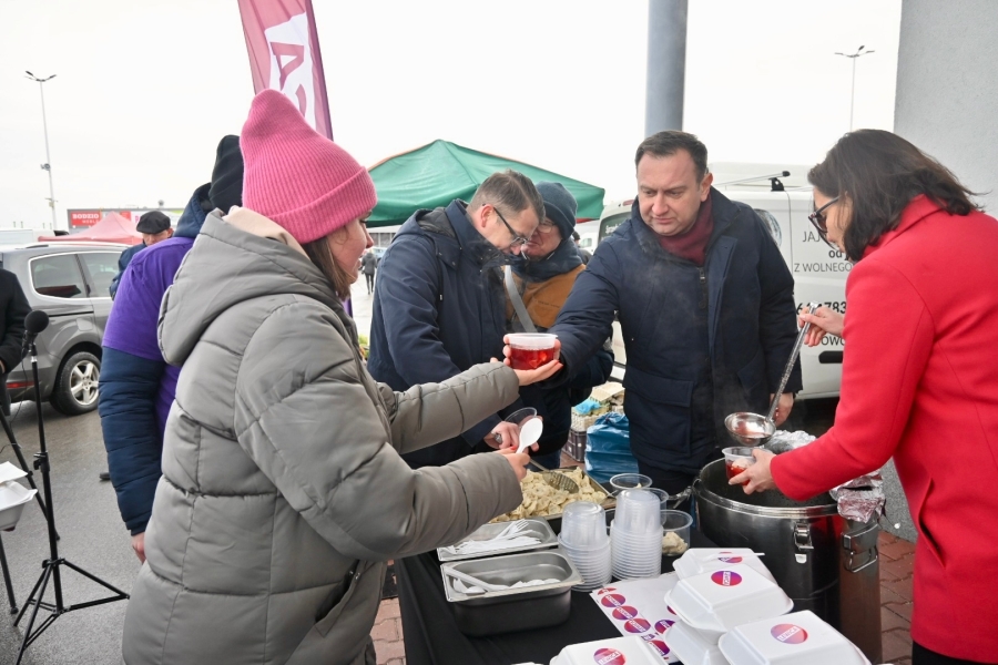 "To już stało się pewnego rodzaju naszą tradycją lewicową, że po prostu dzielimy się posiłkiem. W Łodzi dzielimy się już od kilkunastu lat, ale kilka lat temu rozpoczęliśmy taką akcję w całym województwie łódzkim. W poprzednich latach byliśmy w Zduńskiej Woli, Sieradzu, Piotrkowie Trybunalskim, Tomaszowie Mazowieckim i innych miastach, a dzisiaj naszą wyprawę zaczęliśmy od Skierniewic, a teraz jesteśmy w Rawie Mazowieckiej i będziemy jeszcze w Tomaszowie Mazowieckim. Dzielimy się posiłkiem, który składa się z ciepłego barszczu z uszkami, wegetariańskiej kapusty z grochem, pierogów z kapustą i grzybami, a także słodkiego ciasta. Chcemy tym też wskazać na pewien problem. Problem ubóstwa, który rozpowszechnia się w Polsce. Z raportu wynika, że poziom ubóstwa w Polsce rośnie. Chcemy uczulić wszystkich tych, którzy mogą sobie pozwolić na to, żeby podzielić się posiłkiem lub czymkolwiek innym, chociażby dobrym słowem, chociażby jakimś prezentem, żeby również dzielili się z innymi, bo dzielenie się daje radość nam wszystkim" - stwierdziła posłanka Anita Sowińska.